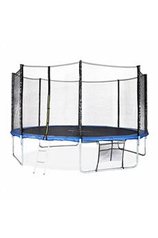 Trampoline 430cm bleu avec filet de protection, échelle, bâche, filet pour chaussures, kit d'ancrage - Vénus XXL- Trampoline de jardin 430 cm 4m|