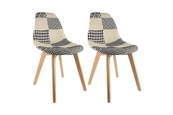 Lot de 2 chaises scandinaves noires et blanches meli. Rehaussez le niveau de votre décoration d'intérieur avec cette chaise en tissu patchwork en deux teintes, soutenu par 4 pie... Style scandinave, couleur principale du lot de 2 chaises : noir et blanc Dimensions totales : 56 x 47 x 85 cm (lxpxh) . Poids du produit : 11.1kg Article lot de 2 chaises qui nécessite un assemblage.