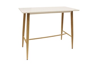 Mange-Debout Rectangulaire Plateau Blanc Sooma. Une table élégante permettant de prendre un peu de hauteur lors de vos repas. Son design contemporain proposant la combinaison des matières et sa finition en feront un meuble de choix pour votre décoration intérieure. Piétement métallique, finition aspect bois. Plateau en MDF, finition blanc laqué. Dimensions : 115 x 60 x H102 cm