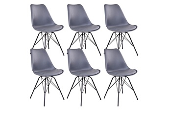 Chaises Altobuy Haga - lot de 6 chaises grises avec piétement métallique