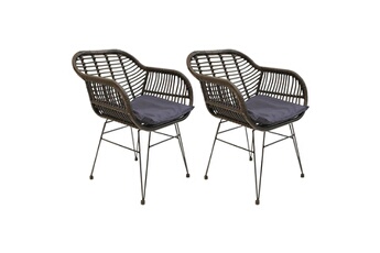 Lot de 2 fauteuils tressées noirs avec pieds métal kediri. Utilisable aussi bien à l'extérieur comme à l'intérieur, ce fauteuil vous offrira une touche design du plus bel effet.... Style contemporain, couleur principale du chaises & fauteuils : noir et Dimensions totales : 56 x 60 x 80 cm (lxpxh) . Poids du produit : 14.7kg Article chaises & fauteuils qui nécessite un assemblage.