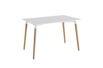 Table Altobuy Zuri - table rectangulaire blanche et pieds effet bois