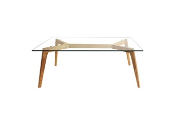 Table basse rectangulaire plateau verre verane. Le choix d'un plateau en verre combiné à un piétement en bois massif donne à cette table un aspect design se mariant sans soucis ... Style scandinave, couleur principale du table basse : transparent et naturel Dimensions totales : 110 x 60 x 45 cm (lxpxh) . Poids du produit : 17kg Article table basse qui nécessite un assemblage.