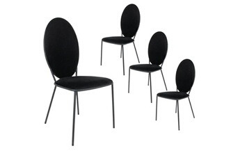 Lot de 4 chaises velours noires clovis. Un modèle de caractère avec son médaillon ovale chic. Le confort de l'assise est renforcé par son revêtement en velours. Avec son piéteme... Style contemporain, couleur principale du lot de 4 chaises : noir et noir Dimensions totales : 51 x 53 x 96 cm (lxpxh) . Poids du produit : 22.4kg Article lot de 4 chaises qui nécessite un assemblage.