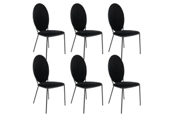 Lot de 6 chaises velours noires clovis. Un modèle de caractère avec son médaillon ovale chic. Le confort de l'assise est renforcé par son revêtement en velours. Avec son piéteme... Style contemporain, couleur principale du lot de 6 chaises : noir et noir Dimensions totales : 51 x 53 x 96 cm (lxpxh) . Poids du produit : 33.6kg Article lot de 6 chaises qui nécessite un assemblage.