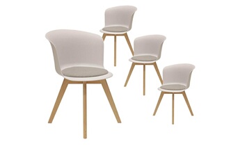 Lot de 4 chaises blanches avec assise grise enael. Un modèle de chaise dans l'air du temps qui saura vous séduire avec ses formes dynamique. En plus de sa coque rigide du plus b... Style design, couleur principale du lot de 4 chaises : blanc et naturel Dimensions totales : 56 x 53 x 75 cm (lxpxh) . Poids du produit : 20kg Article lot de 4 chaises qui nécessite un assemblage.