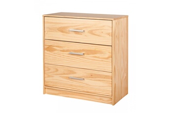 Elégante commode avec 3 tiroirs en pin massif. Cette commode est idéale pour une chambre d'enfant, d'adolescent ou une chambre d'amis. Elle trouve sa place partout et permet de ranger une multitude d'affaires comme du linge de maison. Structure pin massif teinté naturel. Dimensions : 70 x 35 x H71cm