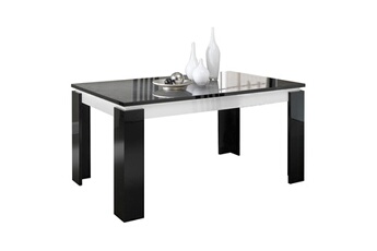 Table Rectangulaire Extensible Victoria. Une table élégante et pratique, Son grand plateau de 160cm de longueur est idéal pour se retrouver autour d'un repas sans se marcher dessus, et grâce à son allonge centrale supplémentaire, passez en quelques instants sur un plateau de 200cm de longueur ! Misez sur une ambiance épurée et sophistiquée avec le reste des meubles de la serie Victoria. Piétement en panneaux de particules, finition laqué noir et blanc brillant. Plateau de table en panneaux de particules, finition décor marbré. Dimensions : 160(+40) x 90 x H76 cm