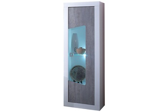 Vitrine 1 porte nevada gris. Derrière sa grande porte se dissimule divers espaces de rangements, sublimés par un éclairage led inclus. La porte peut se régler pour s'ouvrir côté... Style contemporain, couleur principale du vitrine : gris et blanc Dimensions totales : 60 x 44 x 180 cm (lxpxh) . Poids du produit : 54.5kg Article vitrine qui nécessite un assemblage.
