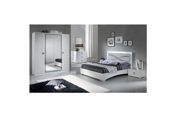 Chambre complète Manhattan composée d'un lit 160x200cm avec Led, de deux chevets, d'une commode, d'un miroir et d'une armoire. Une gamme de produits esthétiques et contemporains qui donneront une touche de modernité à votre chambre. L'armoire quand à elle vous permettra de bénéficier d'un espace de rangement optimal en plus de deux penderies. Sommier et matelas non inclus. Lit, chevet, commode et armoire : Structure en panneaux de particules, finition laquée, coloris gris brillant. Poignée et pieds en ABS chromé. Miroir : Structure en panneaux de particules, finition laquée, coloris gris brillant Dimensions Lit : 172,1 x 213 x H109,3 cm Dimensions Chevet : 55 x 41,5 x H30,5 cm Dimensions Commode : 96 x 45,5 x H83,5 cm Dimensions Miroir : 70 x 2,5 x H90 cm Dimensions Armoire : 184,7 x 59 x H203 cm
