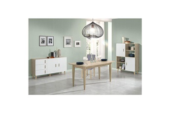 Ensemble aneby composé d'une table repas extensible, d'un meuble 2 portes 4 niches et d'un buffet 2 portes 4 tiroirs. Une sélection qui opte pour un style scandinave percutant. ... Style scandinave, couleur principale du salle à manger complète : marron clair et blanc Dimensions totales : 160 x 80 x 78 cm (lxpxh) . Poids du produit : 139kg Article salle à manger complète qui nécessite un assemblage.