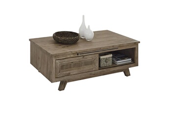 Table Basse Rectangulaire. Avec son grand plateau et sa niche de rangement, cette table basse à tout ce qu'il vous faut si vous êtes à la recherche d'un meuble design et ergonomique. Laissez-vous charmer par le reste de la gamme Fjord inspirée des meubles scandinaves. Structure en acacia massif, côtés et portes : placage acacia sur MDF. Dos et fonds de tiroirs en contreplaqué. Dimensions : 130 x 70 x H45 cm