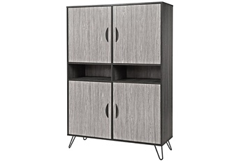 Meuble bar 4 portes asca. Parfait pour ranger alcools, verres et autres objets, ce meuble dispose également d'une niche centrale pour y exposer quelques accessoires. renouez ave... Style vintage, couleur principale du buffet et bahut : gris et gris anthracite Dimensions totales : 112 x 40 x 160 cm (lxpxh) . Poids du produit : 70kg Article buffet et bahut qui nécessite un assemblage.