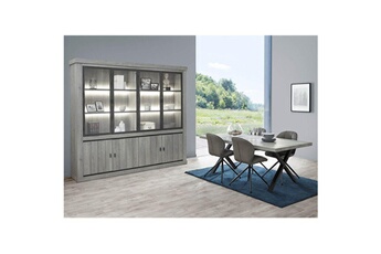 Ensemble Massyle composé de : 1x Table Rectangulaire 170cm 1x Bibliothèque 4 Portes Un duo de meuble qui sera parfait pour meubler votre séjour. A combiner avec les autres meubles de la gamme Massyle. Table Rectangulaire : Piètement métallique anthracite. Plateau en panneau de particules, finition aspect bois grisé. Bibliothèque : Structure en panneau de particules, finition aspect bois grisé. Portes et tiroirs avec système Softclose. Portes vitrées. Eclairage inclus. Dimensions Table : 170 x 100 x H76 cm Dimensions Bibliothèque : 248 x 48 x H226 cm