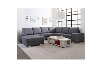 Canapé d'angle droit tissu gris bale. Un canapé de style contemporain qui sera parfait pour réunir tous vos proches dans le salon. Composé de 4 blocs, ce canapé en u dispose éga... Style contemporain, couleur principale du salon d'angle : gris et Dimensions totales : 350 x 275 x 90 cm (lxpxh) . Poids du produit : 215kg Article salon d'angle livré monté. Pas besoin de se fatiguer !
