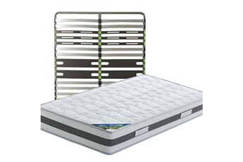 Ensemble composé d'un matelas seychelles 140x200 cm et d'un cadre à lattes altozone 140x200 cm. L... Couleur Dimensions : long: cm, larg: cm, haut: cm