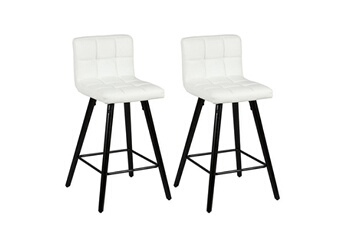 Lot de 2 Tabourets Blancs Soren Un tabouret élégant avec son piètement en bois massif et son assise moderne avec dossier confortable. Parfait pour un coin cuisine ou pour aller avec votre bar. Piètement en frêne, finition laqué anthracite. Support et repose-pieds en métal laqué noir. Embouts de pieds réglables. Assise garnie de mousse polypropylène de densité 30kg/m3. Revêtement assise et dossier en simili blanc. Hauteur d'assise : 65 cm. Dimensions : 39 x 43 x H91 cm