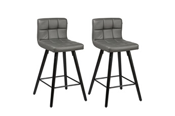 Lot de 2 Tabourets Gris Soren Un tabouret élégant avec son piètement en bois massif et son assise moderne avec dossier confortable. Parfait pour un coin cuisine ou pour aller avec votre bar. Piètement en frêne, finition laqué anthracite. Support et repose-pieds en métal laqué noir. Embouts de pieds réglables. Assise garnie de mousse polypropylène de densité 30kg/m3. Revêtement assise et dossier en simili gris. Hauteur d'assise : 65 cm. Dimensions : 39 x 43 x H91 cm