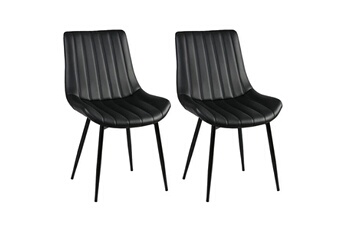 CAROLANN - Lot de 2 Chaises Noires Métal et PVC