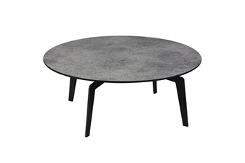 Table Basse Ronde Delora. Composée d'acier et de verre, cette table basse au look très contemporain s'adaptera aux intérieurs d'aujourd'hui sans soucis. Le plateau arbore un revêtement aspect céramique anti-rayures du plus bel effet. Structure en acier gris antracite mat. Plateau en verre feuilleté ép. 12mm, finition peinture durcie au fou aspect céramique (résistant aux rayures). Dimensions : Ø90 x H36 cm.