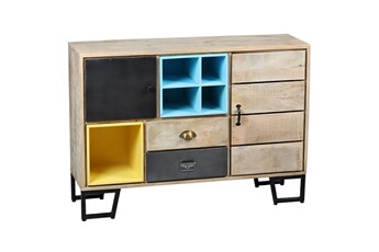 Buffet 2 Portes 2 Tiroirs Parchet. Proposant un espace de rangement coloré et surtout optimal grâce à ses rangements variés, ce buffet peut s'utiliser aisément dans diverses pièces de votre intérieur. Avec son style industriel combinant le bois massif et le métal, et son ergonomie en terme d'espace de rangement, la gamme Parchet est idéale pour les intérieurs d'aujourd'hui. Structure en palissandre massif finition vieilli. Tiroirs en palissandre massif et acier vernis laqué. Caisson en MDF laqué. Pieds à monter. Dimensions : 120 x 35 x H80 cm. Bois issu de la gestion contrôlée des forêts.