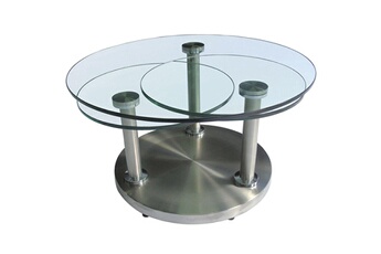 Table Basse Acier Brossé Venise. Proposant un style contemporain composé de métal et de verre ainsi que 3 plateaux pivotants excentrés, cette table basse sera du plus bel effet dans votre salon. Piètement en acier brossé. Plateaux en verre trempé ép. 12mm. Dimensions fermée : Ø80 x H40 cm Dimensions ouverte : 140 x 80 x H40 cm