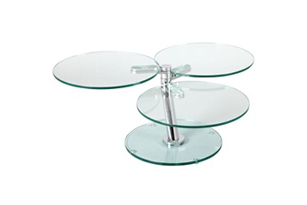 Table basse ronde viki. Proposant 3 plateaux pivotants du plus bel effet, cette table basse contemporaine charmera vos convives et s'adaptera à vos besoins en terme d'espace.... Style contemporain, couleur principale du table basse : transparent et gris Dimensions totales : 75 x 55 x 43 cm (lxpxh) . Poids du produit : 39kg Article table basse qui nécessite un assemblage.