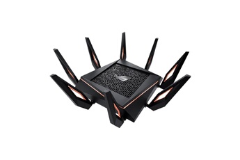 Le routeur ASUS ROG Rapture AX11000 Triband WLAN Gaming Router est un puissant routeur wifi 10 Gigabit avec processeur Quad-Core, port de jeu 2.5G, bande DFS, WTFast, QoS adaptative, système AiMesh for Mesh Wifi et AiProtection Network Security Triband Gaming. La triple accélération de jeu accélère le trafic Internet de l'appareil au serveur de jeu. L'ASUS AX11000 est compatible avec le système Wifi ASUS AiMesh pour une couverture Wi-Fi sans faille dans la maison.