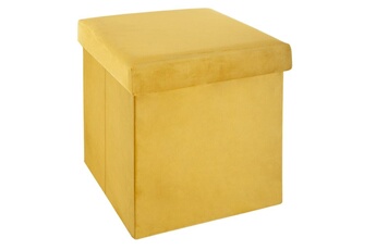Pouf pliable - L 38 x l 38 x H 38 cm - Velours - Jaune moutarde