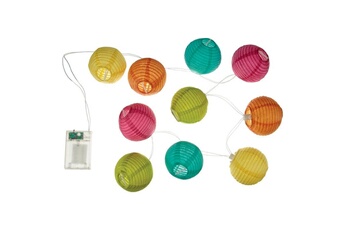 Détail Dimensions : Boule : D. 7,5 cm - Câble : L. 120 cm - Matière : Papier / PVC / Autre. - Couleur : Rose, Fuchsia, Corail, Jaune, Turquoise, Blanc Chaud.Fonctionne à pile, 3 PILES AA non incluses.Nombre de LED : 10Poids Produit : 0,25 kg