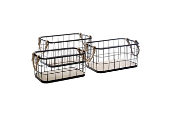 Atmosphera - Lot de 3 Caisses cagettes en métal et bois Vintage loft Noir