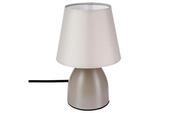 Atmosphera - Lampe de chevet taupe H19.5 (-) Matière : Abat-jour en polyester, pied en fer . - Dimensions : D. 12,5 x H. 19,5 cm . - Type d'alimentation : Secteur . (-) Modèle : Taupe