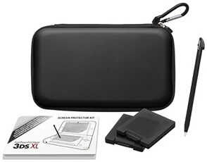Inclut : Protections écrans, Etoffe de nettoyage antistatique, Sacoche de transport rigide, 1 stylet tactile, 2 Boîtiers de rangement et de protection pour jeux Nintendo DS