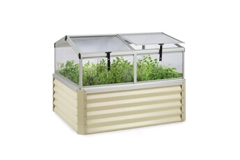 Carré potager Blumfeldt High grow advanced carré de potager surélevé avec toit 120 x 95x 100 cm - acier beige