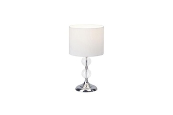 Lampe à poser polyvalente et décorative Rom avec décor en verre Le pied esthétique chromé de la lampe à poser Rom est décorée de deux boules de verre transparentes. L'ampoule est entourée par un abat-jour en textile blanc qui garantit un éclairage non-éblouissant et agréable. Ce luminaire est équipé d'un interrupteur sur fil.