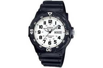 Montre bracelet MRW-200H-7BVDF pour homme à quartz, avec une boîtier de acier inoxydable d’un diamètre de 45 mm, avec un cadran blanc et avec un bracelet de résine en couleur noir.