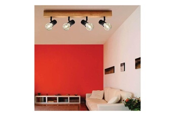 Plafonnier Townshend 3 à quatre lampes en bois L’alliance du design épuré et de l’éclairage optimal fait du plafonnier Townshend à quatre lampes un accessoire particulier. Les spots flexibles créent des accents personnalisés et la combinaison de matériaux permet de les intégrer aisément dans les styles d'intérieur existants. Le boîtier de raccordement au plafond du luminaire est en bois clair et se compose d'une poutre en bois étroite et angulaire. À l’inverse, les barres qui en partent pour conduire aux quatre douilles complète le design clair avec de l'acier noir. Les ampoules exposées donnent un ensemble harmonieux et intemporel, facile à combiner.