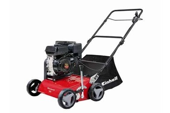 EINHELL Scarificateur thermique - Cylindrée : 118CC - Moteur 4 temps - Refroidissement par air - Puissance : 2,2kW - Profondeur de travail : 20mm (8 positions) - Nombre de lames : 18 pièces - Bac de ramassage : 45L - Lames haut de gamme en acier - Guidon repliable - Carter solide en métal - Pour des surfaces jusqu'à 1200m².