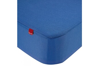 Drap housse Epeda 2 en 1 bleu Bonnet 30 cm. Adaptable aux matelas d'épaisseur 26 à 32 cm. 1 face drap housse 100% fibres Tencel® 1 face protège-matelas imperméable. Lavable en machine à 40°.