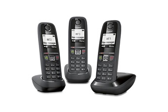 Fnac.com : Gigaset AS470 Trio - Téléphone sans fil avec ID d'appelant - DECTGAP - noir + 2 combinés supplémentaires - Téléphone sans fil. Remise permanente de 5% pour les adhérents, commandez vos produits high-tech en ligne et retirez-les en magasin.