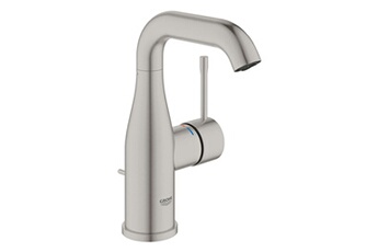 Grohe - Mitigeur monocommande Lavabo Taille M supersteel bec mobil avec butée et mousseur Essence Avec son bec moyen courbé caractéristique, ce mitigeur de lavabo monocommande moyen GROHE Essence en GROHE SuperSteel avec clapet de vidage s'intègre parfaitement à n'importe quelle salle de bains tendance et contemporaine. Véritable concentré de technologies GROHE, cet ensemble est un véritable plaisir à utiliser. Grâce à la cartouche céramique GROHE SilkMove, la température et le débit d'eau peuvent être commandés avec précision et sans efforts. La technologie GROHE EcoJoy limite l'écoulement de l'eau à 5,7 l min, ce qui permet d'économiser de l'eau et de l'argent. Elle bénéficie même d'une zone de rotation, pour une maîtrise totale du nettoyage. Fixez le bec à 0°, limitez le mouvement à moins de 150° ou profitez d'une flexibilité à 360°. Vous pouvez même définir l'angle de l'aérateur AquaGuide pour s'adapter aux contours de votre lavabo pour éviter les déversement et les éclaboussures.