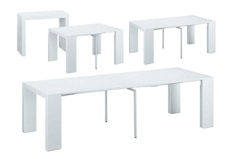 Descriptif : - Pratique et prend peu de place - Table très fonctionnelle - Parfaite pour les petits espaces ! - Design classique - Possibilité d'augmenter la capacité d'accueil + 250 cm - Structure en MDF - Finition effet brillant.Matière : MDF.Finition : Laquée.Forme : Rectangulaire.Rallonge : 50/300 cm.Dimensions : 300 x 94 x 75 cm.Hauteur ajustable : Non.Coloris : Blanc.Colisage : 2 colis : - 1,01 x 0,85 x 0,52 m,