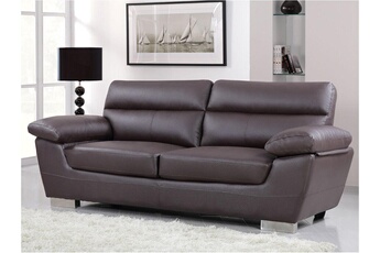 Canapé fixe en cuir reconstitué et PVC 'Dallas' - 210 x 88 x 90 cm - 3 places - Chocolat - HABITAT ET JARDIN