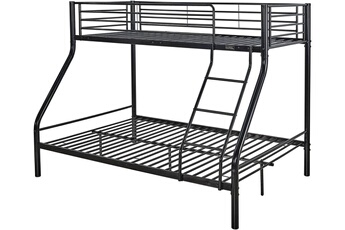Matière : Métal.Pied : Métal.Dimensions : - 201 x 145.5 x 167.5 cm - Lit du haut : 200 x 98 x 32 cm - Lit du bas : 200 x 145 x 32 cm- Hauteur entre les deux couchages : 105 cm - Hauteur de couchage lit du bas : 20 cm - Hauteur de couchage lit du haut : 125 cm - Épaisseur de la structure : 12 mm.Poids : Maximum supporté : 80 kg (lit du haut) et 200 kg (lit du bas).Colisage : 1 colis : - 1,93 x 0,995 x 0,15 m, 42,7 kg.