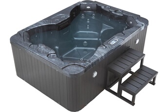 Descriptif : - Eclairage d'ambiance LED 7 couleurs - Panneau de contrôle digital .Forme : Carré.Nombre de places : 8 places.Nombre de jets : 16 jets.Cuve : Acrylique.Réchauffeur : Min. 26°C - Max.40°C - 3000W.Filtration : 16.8m3/h - 220V.Pompe de circulation : Vitesse min.: 280 L/min - Vitesse max.: 620 L/min.Lumiére : Eclairage LED - 7 couleurs.Coloris de la jupe : Noir.Coloris de la cuve : Gris.Ecran : Panneau de c