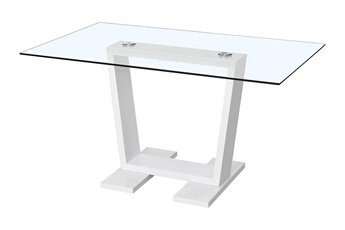 Descriptif : - Plateau en verre - Structure en MDF - Élégante finition effet brillant - Style sobre et chic - A harmoniser avec une décoration moderne .Matière : MDF.Finition : Laquée.Forme : Rectangle.Pied : 50 x 18 cm - Blanc.Plateau : Verre transparent - 150 x 90 cm - Épaisseur :10 mm.Rallonge : Non.Dimensions : 150 x 90 x 75 cm.Hauteur ajustable : Non.Coloris : Blanc.Colisage : 2 colis : - 1,59 x 0,99 x 0,065 m,