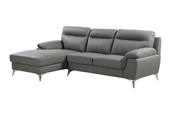 Descriptif : Canapé d'angle en cuir reconstitué et en PVC - Garni de mousse et de ressorts - Pieds chromés.Type : Fixe.Matière : Synthétique.Couleur : Gris.Nombre de places : 4.Position de l'angle : Gauche.Canapé : Cuir reconstitué (assise et dossier) + PVC.Structure : Bois massif et contreplaqué.Assise : Garnie de mousse - Densité : 28 kg/m³.Dossier : Garni de mousse - Densité : 25 kg/m³.Suspension : Ressorts zig-za