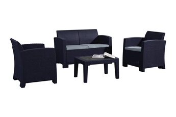 Salon de jardin en résine tressée moulée -Santiago- - Atlanta - Noir
