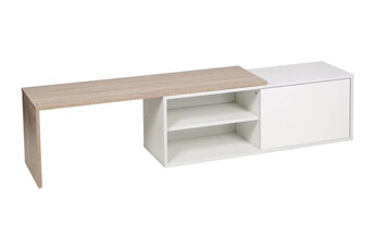 Table basse -Melinda- - Dimensions : 209 x 32 x 36 cm - Forme rectangulaire - Matière : panneaux de particules - Blanc/Chêne