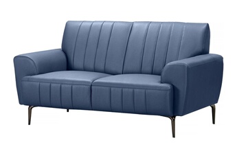 Canapé droit fixe en cuir reconstitué -Bosley- - 162 x 89 x 85 cm - 2 places - Bleu